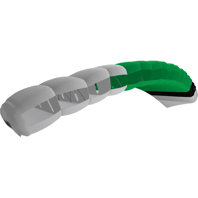 It is an elliptical 9 cell with light shaping, constant cell aspect ratio, with sweet consistent on-heading openings. A forgiving canopy with a powerful flare and responsive controls.